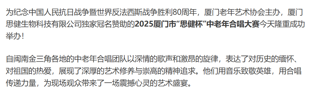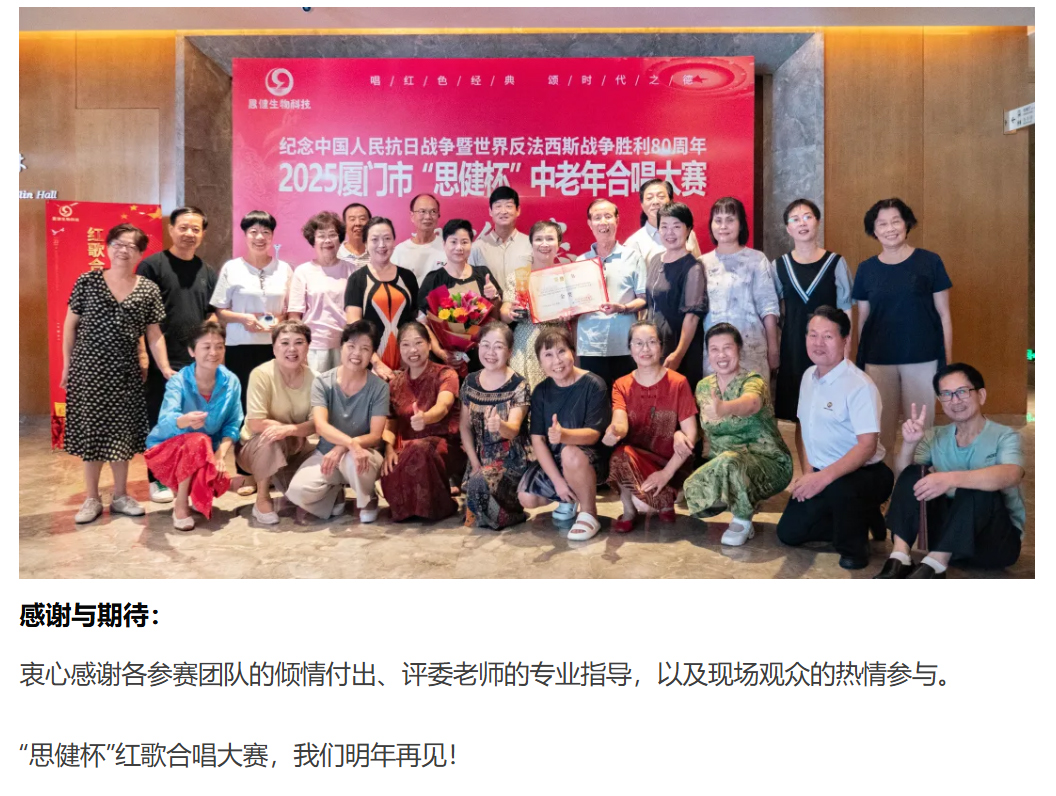 熱烈祝賀2025廈門(mén)市“思健杯”紅歌合唱大賽圓滿(mǎn)成功